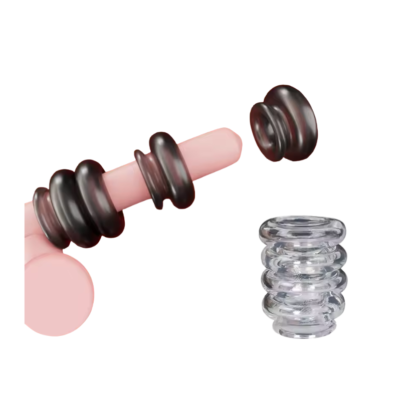 Encaixe os anéis na base do pênis ou em um brinquedo sexual, ajustando a quantidade para limitar a penetração conforme o seu conforto. O uso deve ser feito em conjunto com diálogo e respeito mútuo para garantir uma experiência prazerosa e segura para ambos.